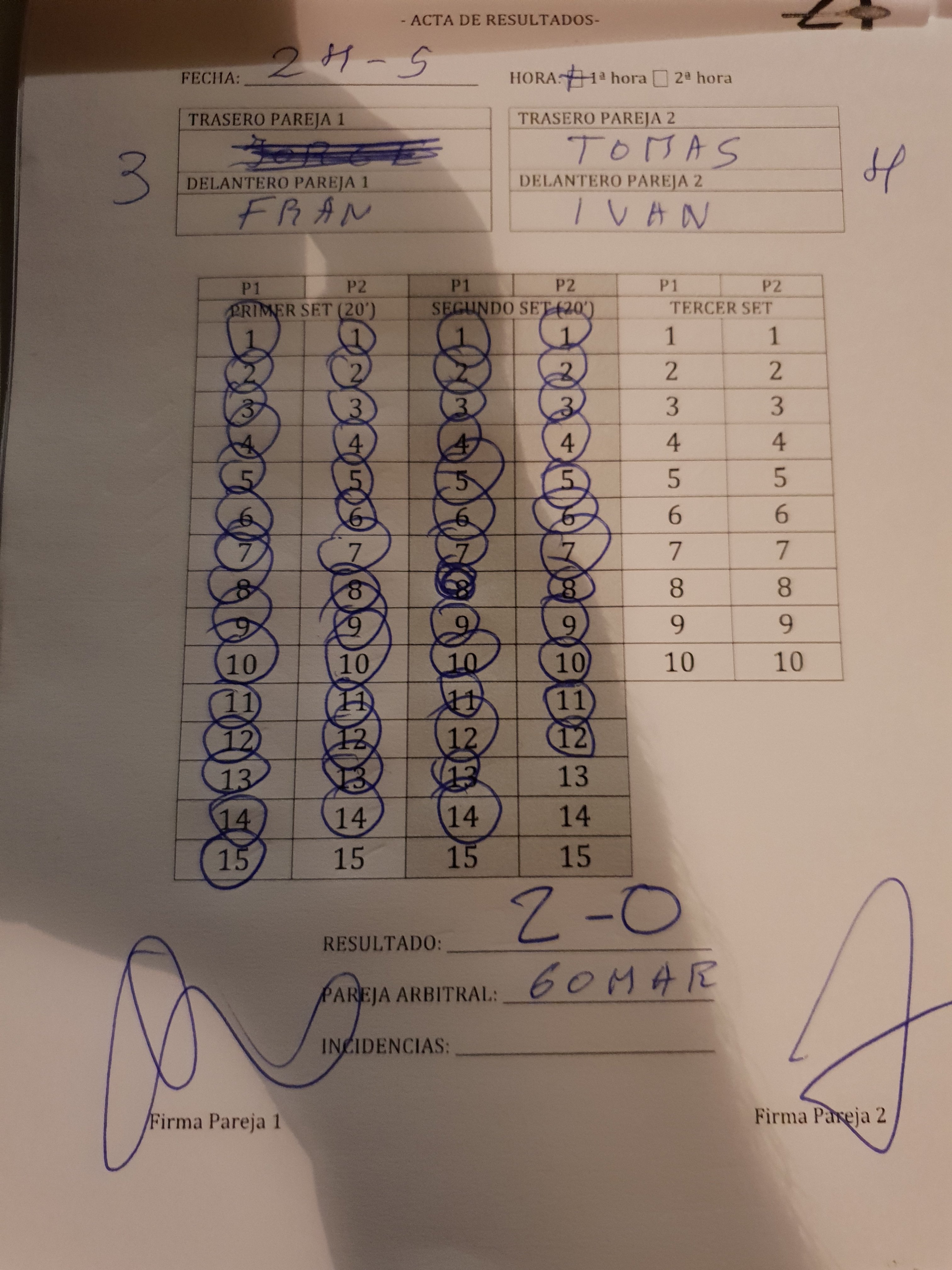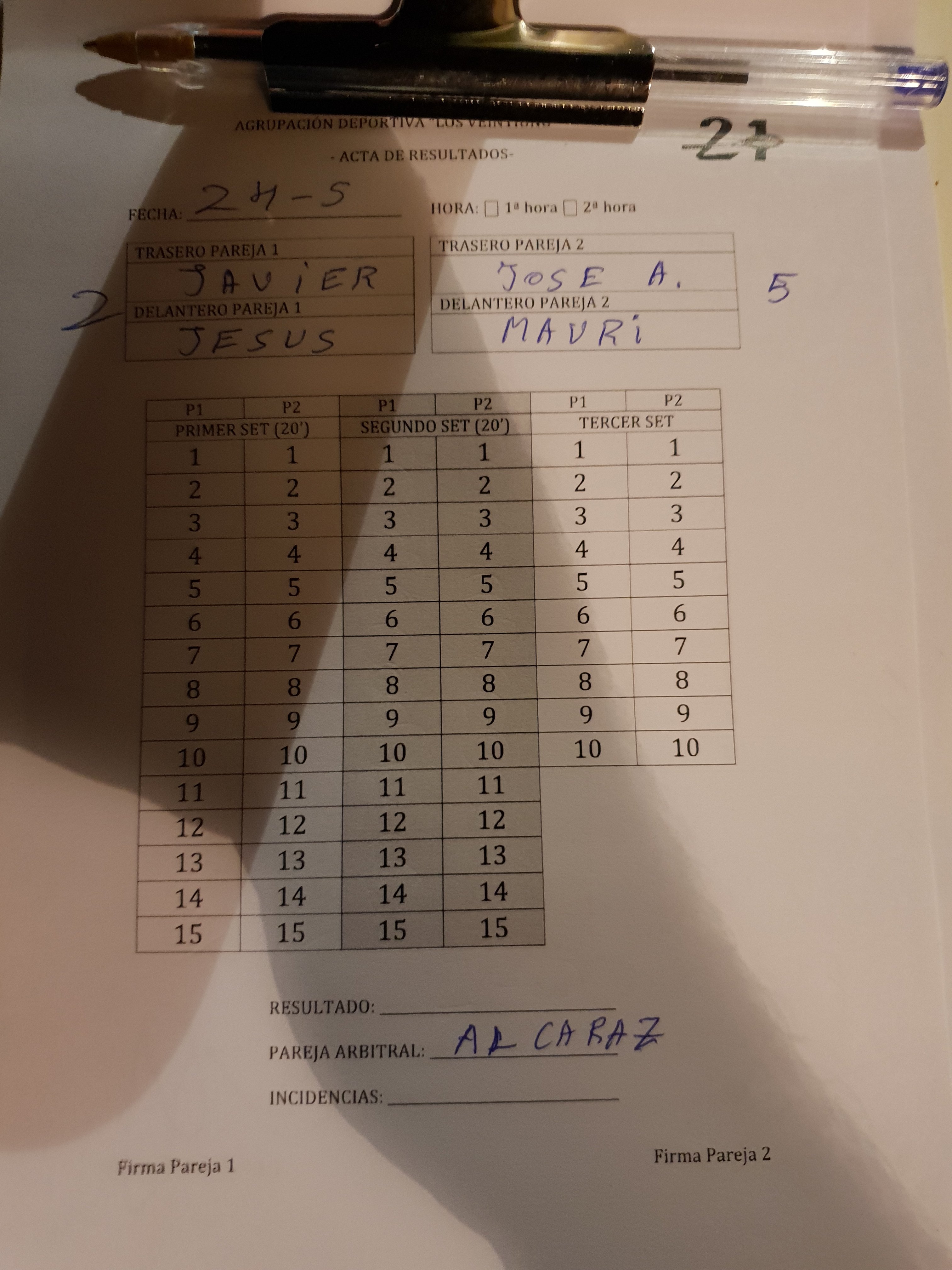 24 de mayo Públicado en 24 mayo, 201825 mayo, 2018 por rperezan En la partida de PRIMERA entre Javier y Jesús, José y Mauri pierden las dos parejas la partida porque han faltado 3 personas a la misma.